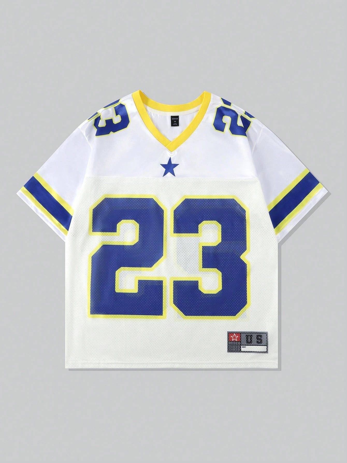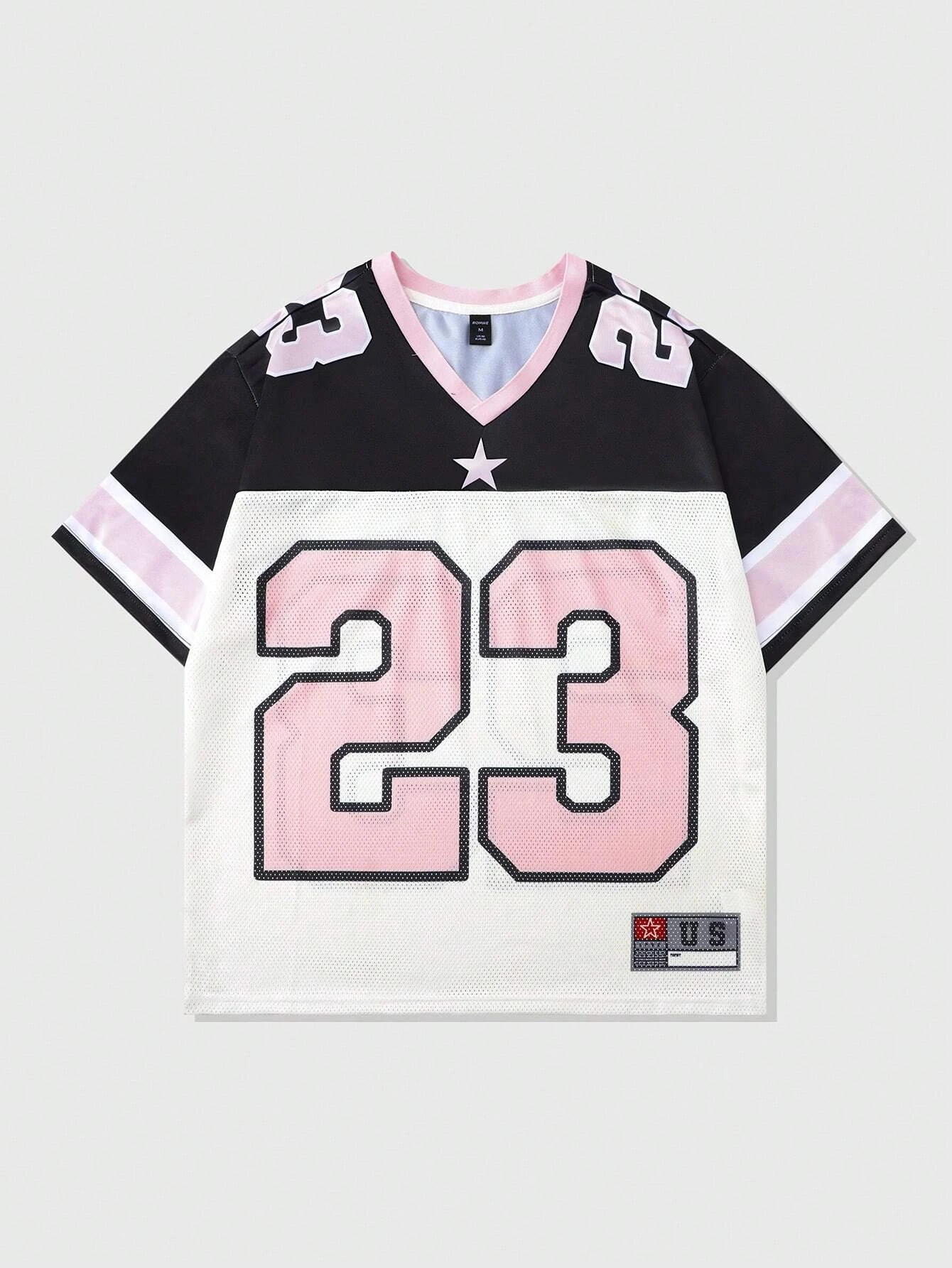 2025 New Hot Women's Summer Y2K Fashion Casual Shirt Street Retro Hip Hop 23 Shirt V-Neck Loose Breathable Quick Drying T-Shirt