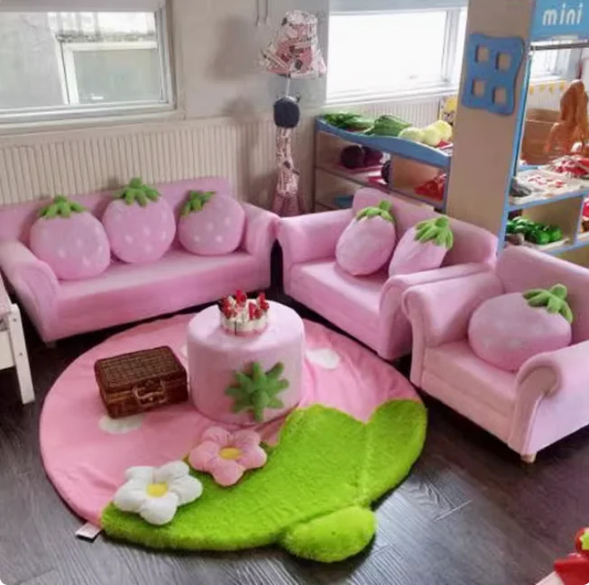 Colorful Pink Strawberry Kids Plush Rug/Floor Mat, Baby Crawl Mat, Sofa Rug, Removable and Washable