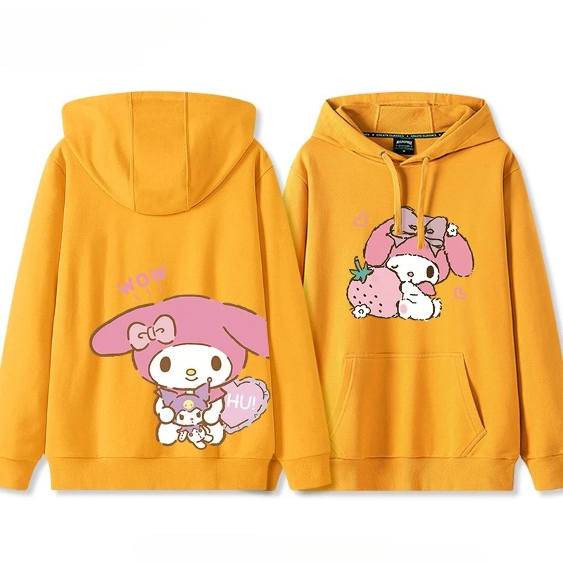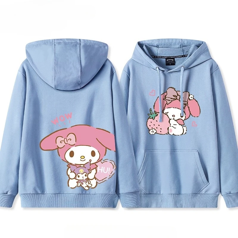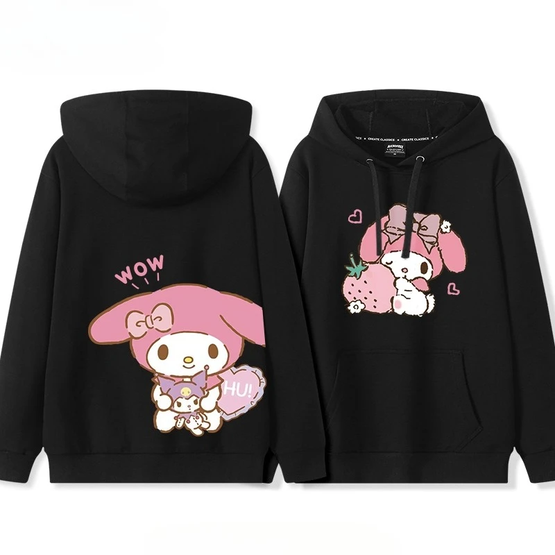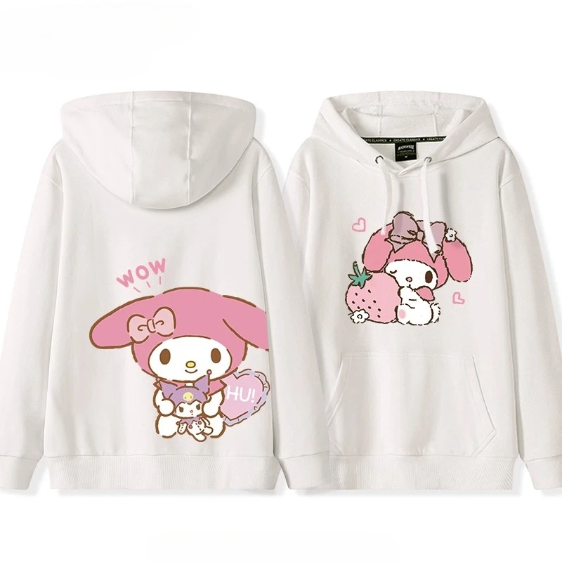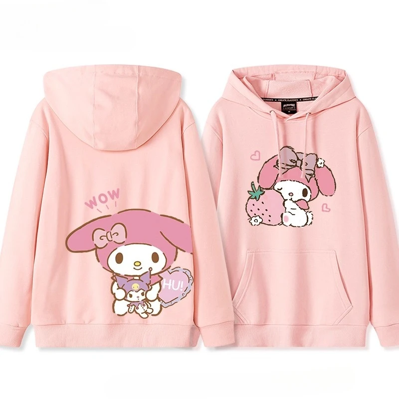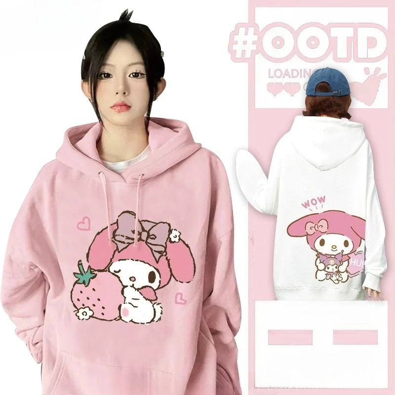 Japanese Retro Soft Cute My Melody Hug Strawberry Print Pattern Hooded Sweater Ins Style Trend Loose Casual Style Cute Girl Top