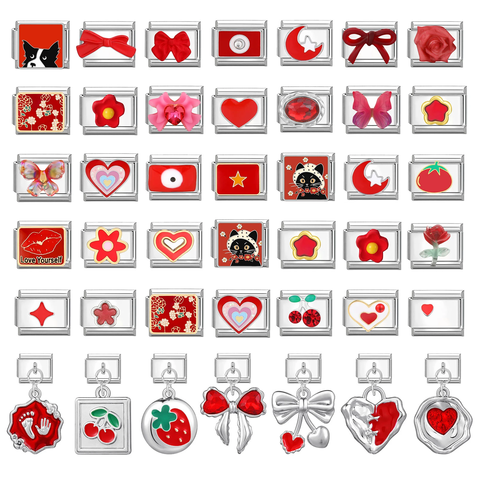 Series Charm Bracelet Lipstick Love Strawberry Italian Charm Links Fit 9mm Bracelet Stainless Steel Making DIY Jewelry