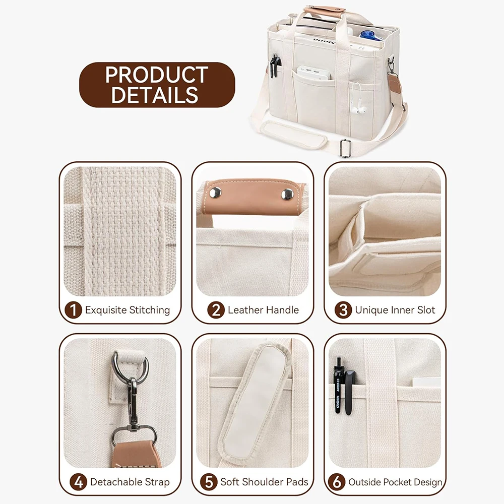 Women’s Canvas Tote Bag with Multiple Pockets, Large Capacity Shoulder Messenger Bag, Stylish, Durable & Versatile for Daily